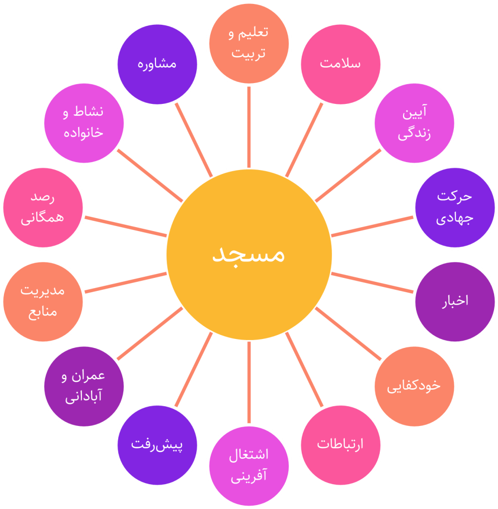 مسجد؛ پایگاه نشر معارف قرآن و اهل بیت(ع)، مسجد؛ مرکز تعمیق اخوت ایمانی و رشد فضایل اخلاقی، مسجد؛ مأمن نوجوانان و جوانان، مسجد؛ میعادگاه منتظران انقلابی، مسجد؛ کانون حیات طیبه خانواده، مسجد؛ بستر ترویج فرهنگ ایثار و شهادت، مسجد؛ محور خدمات فرهنگی و اجتماعی، مسجد؛ خاستگاه و پشتیبان بیداری اسلامی و مسجد؛ پیشتاز در تربیت روحیه خودباوری ملی است.